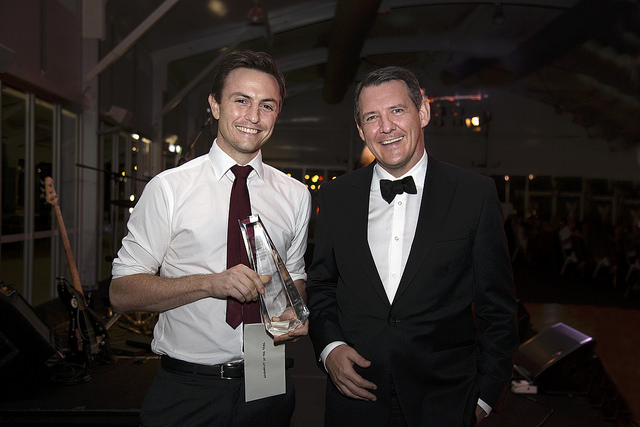 2016 NT Journalist of the year James Oaten with Chief Minister Michael Gunner.